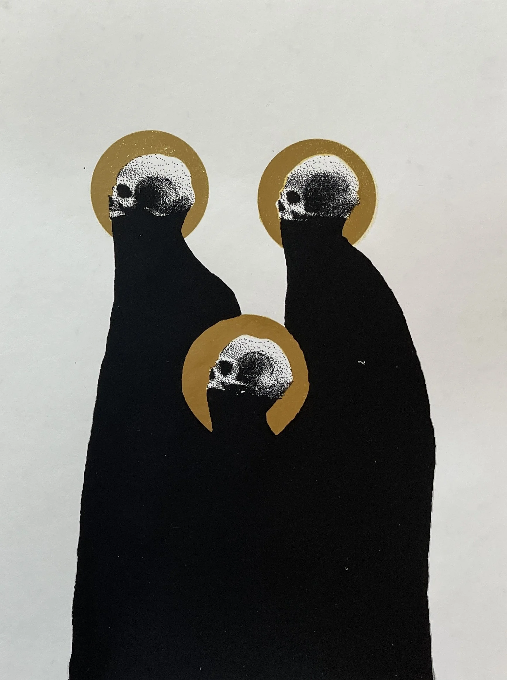 Screenprint recreation of Rob France’s ‘Out of Nowhere’ painting and my response ‘Right Here’ full screenprint with gold foiling